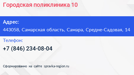 Городская поликлиника №10 по адресу 443058, Самарская область, Самара, Средне-Садовая, 14 в дальнейшем Организация, размещена в следующих категориях: