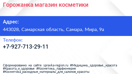 Горожанка, магазин косметики по адресу 443028, Самарская область, Самара, Мира, 9а в дальнейшем Организация, размещена в следующих категориях: