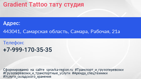 Gradient Tattoo, тату-студия по адресу 443041, Самарская область, Самара, Рабочая, 21а в дальнейшем Организация, размещена в следующих категориях: