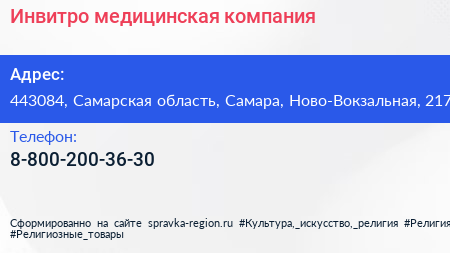 Инвитро, медицинская компания по адресу 443084, Самарская область, Самара, Ново-Вокзальная, 217 в дальнейшем Организация, размещена в следующих категориях: