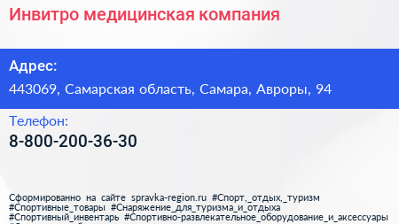 Инвитро, медицинская компания по адресу 443069, Самарская область, Самара, Авроры, 94 в дальнейшем Организация, размещена в следующих категориях: