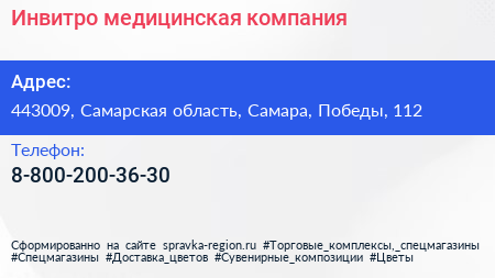 Инвитро, медицинская компания по адресу 443009, Самарская область, Самара, Победы, 112 в дальнейшем Организация, размещена в следующих категориях: