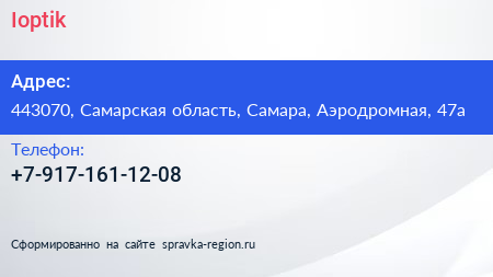 Ioptik по адресу 443070, Самарская область, Самара, Аэродромная, 47а в дальнейшем Организация, размещена в следующих категориях: