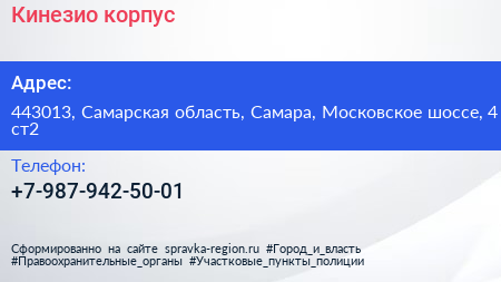 Кинезио корпус по адресу 443013, Самарская область, Самара, Московское шоссе, 4 ст2 в дальнейшем Организация, размещена в следующих категориях: