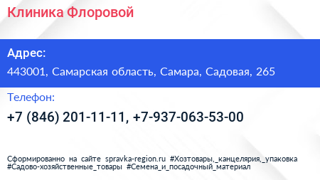 Клиника Флоровой по адресу 443001, Самарская область, Самара, Садовая, 265 в дальнейшем Организация, размещена в следующих категориях: