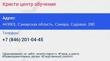 Кристи, центр обучения по адресу 443001, Самарская область, Самара, Садовая, 280 в дальнейшем Организация, размещена в следующих категориях:
