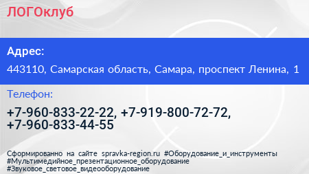 ЛОГОклуб по адресу 443110, Самарская область, Самара, проспект Ленина, 1 в дальнейшем Организация, размещена в следующих категориях: