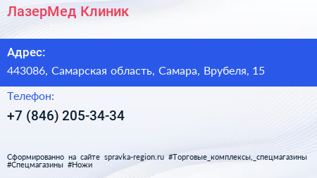 ЛазерМед Клиник по адресу 443086, Самарская область, Самара, Врубеля, 15 в дальнейшем Организация, размещена в следующих категориях: