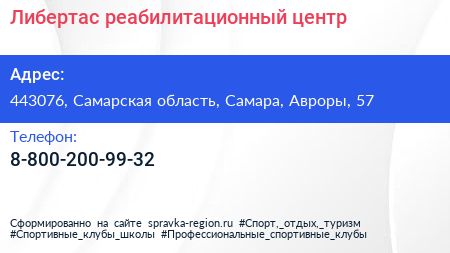 Либертас, реабилитационный центр по адресу 443076, Самарская область, Самара, Авроры, 57 в дальнейшем Организация, размещена в следующих категориях: