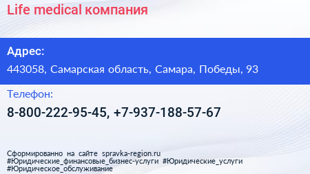 Life medical, компания по адресу 443058, Самарская область, Самара, Победы, 93 в дальнейшем Организация, размещена в следующих категориях: