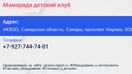 Мамарада, детский клуб по адресу 443035, Самарская область, Самара, проспект Кирова, 201 в дальнейшем Организация, размещена в следующих категориях: