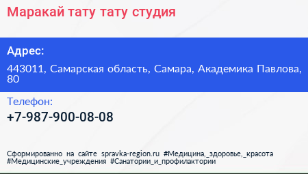Маракай-тату, тату-студия по адресу 443011, Самарская область, Самара, Академика Павлова, 80 в дальнейшем Организация, размещена в следующих категориях: