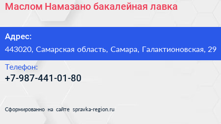 Маслом Намазано, бакалейная лавка по адресу 443020, Самарская область, Самара, Галактионовская, 29 в дальнейшем Организация, размещена в следующих категориях: