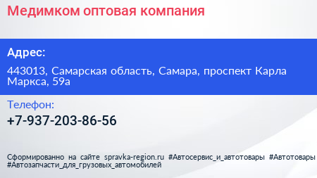 Медимком, оптовая компания по адресу 443013, Самарская область, Самара, проспект Карла Маркса, 59а в дальнейшем Организация, размещена в следующих категориях: