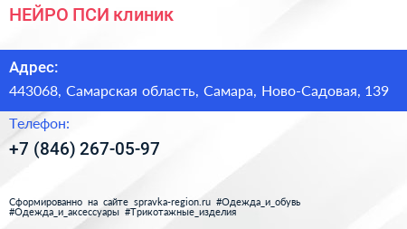 НЕЙРО-ПСИ клиник по адресу 443068, Самарская область, Самара, Ново-Садовая, 139 в дальнейшем Организация, размещена в следующих категориях: