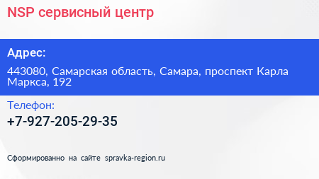 NSP, сервисный центр по адресу 443080, Самарская область, Самара, проспект Карла Маркса, 192 в дальнейшем Организация, размещена в следующих категориях: