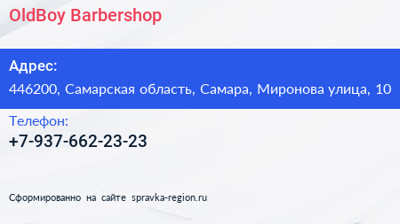 OldBoy Barbershop по адресу 446200, Самарская область, Самара, Миронова улица, 10 в дальнейшем Организация, размещена в следующих категориях: