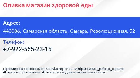 Оливка, магазин здоровой еды по адресу 443086, Самарская область, Самара, Революционная, 52 в дальнейшем Организация, размещена в следующих категориях: