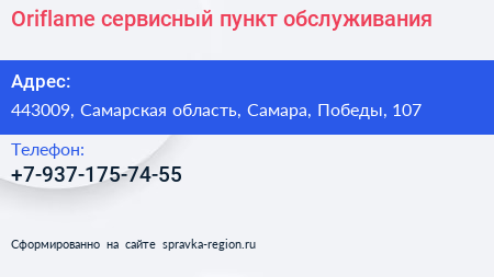 Oriflame, сервисный пункт обслуживания по адресу 443009, Самарская область, Самара, Победы, 107 в дальнейшем Организация, размещена в следующих категориях: