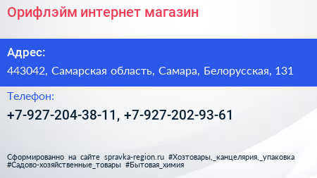 Орифлэйм, интернет-магазин по адресу 443042, Самарская область, Самара, Белорусская, 131 в дальнейшем Организация, размещена в следующих категориях: