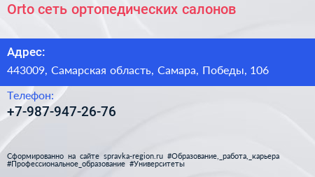 Orto, сеть ортопедических салонов по адресу 443009, Самарская область, Самара, Победы, 106 в дальнейшем Организация, размещена в следующих категориях: