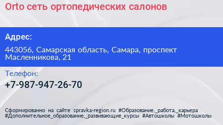 Orto, сеть ортопедических салонов по адресу 443056, Самарская область, Самара, проспект Масленникова, 21 в дальнейшем Организация, размещена в следующих категориях: