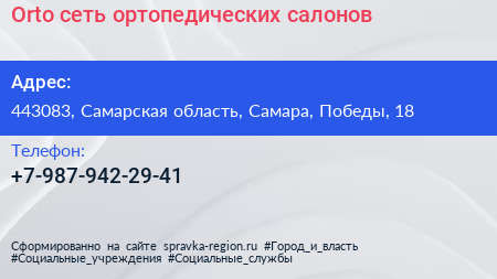 Orto, сеть ортопедических салонов по адресу 443083, Самарская область, Самара, Победы, 18 в дальнейшем Организация, размещена в следующих категориях: