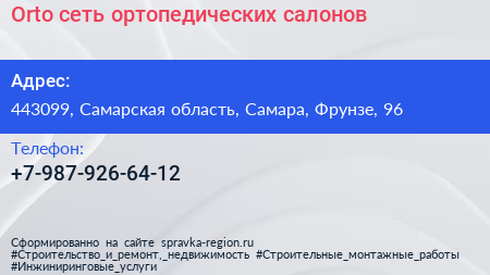 Orto, сеть ортопедических салонов по адресу 443099, Самарская область, Самара, Фрунзе, 96 в дальнейшем Организация, размещена в следующих категориях: