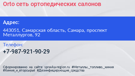Orto, сеть ортопедических салонов по адресу 443051, Самарская область, Самара, проспект Металлургов, 92 в дальнейшем Организация, размещена в следующих категориях: