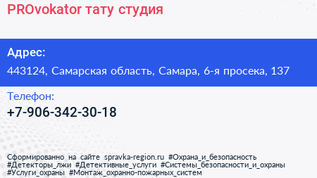 PROvokator, тату-студия по адресу 443124, Самарская область, Самара, 6-я просека, 137 в дальнейшем Организация, размещена в следующих категориях: