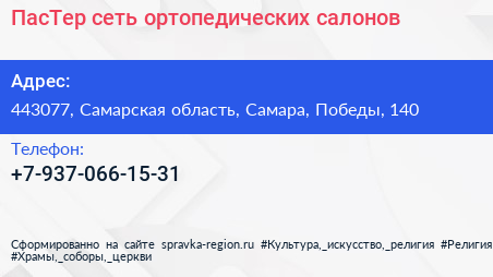 ПасТер, сеть ортопедических салонов по адресу 443077, Самарская область, Самара, Победы, 140 в дальнейшем Организация, размещена в следующих категориях: