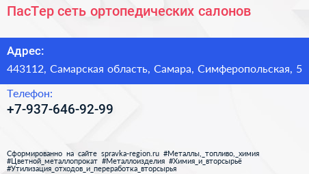 ПасТер, сеть ортопедических салонов по адресу 443112, Самарская область, Самара, Симферопольская, 5 в дальнейшем Организация, размещена в следующих категориях: