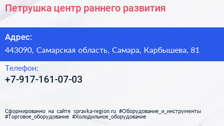 Петрушка, центр раннего развития по адресу 443090, Самарская область, Самара, Карбышева, 81 в дальнейшем Организация, размещена в следующих категориях: