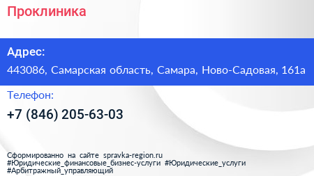 Проклиника по адресу 443086, Самарская область, Самара, Ново-Садовая, 161а в дальнейшем Организация, размещена в следующих категориях: