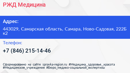 РЖД-Медицина по адресу 443029, Самарская область, Самара, Ново-Садовая, 222Б к2 в дальнейшем Организация, размещена в следующих категориях: