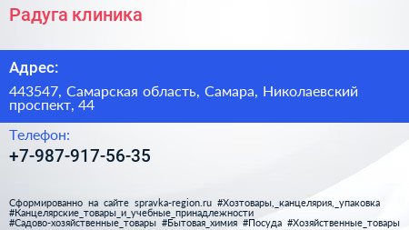 Радуга, клиника по адресу 443547, Самарская область, Самара, Николаевский проспект, 44 в дальнейшем Организация, размещена в следующих категориях: