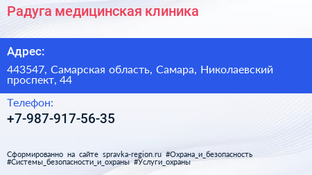 Радуга, медицинская клиника по адресу 443547, Самарская область, Самара, Николаевский проспект, 44 в дальнейшем Организация, размещена в следующих категориях: