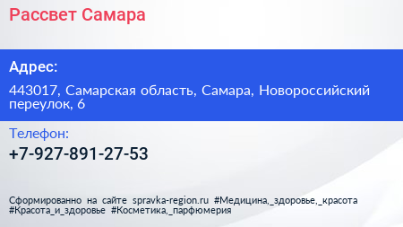 Рассвет Самара по адресу 443017, Самарская область, Самара, Новороссийский переулок, 6 в дальнейшем Организация, размещена в следующих категориях: