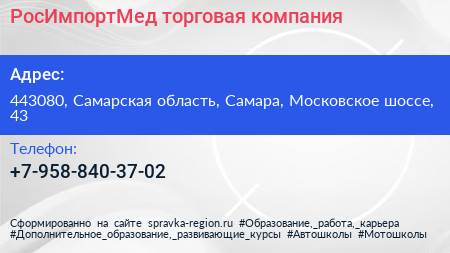 РосИмпортМед, торговая компания по адресу 443080, Самарская область, Самара, Московское шоссе, 43 в дальнейшем Организация, размещена в следующих категориях: