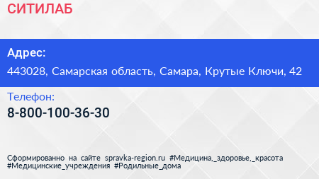 СИТИЛАБ по адресу 443028, Самарская область, Самара, Крутые Ключи, 42 в дальнейшем Организация, размещена в следующих категориях: