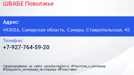 ШВАБЕ-Поволжье по адресу 443016, Самарская область, Самара, Ставропольская, 45 в дальнейшем Организация, размещена в следующих категориях: