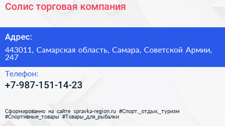 Солис, торговая компания по адресу 443011, Самарская область, Самара, Советской Армии, 247 в дальнейшем Организация, размещена в следующих категориях: