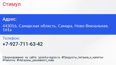 Стимул по адресу 443016, Самарская область, Самара, Ново-Вокзальная, 161а в дальнейшем Организация, размещена в следующих категориях: