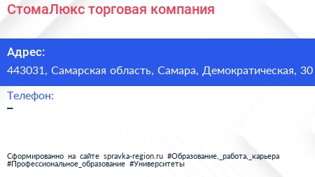 СтомаЛюкс, торговая компания по адресу 443031, Самарская область, Самара, Демократическая, 30 в дальнейшем Организация, размещена в следующих категориях: