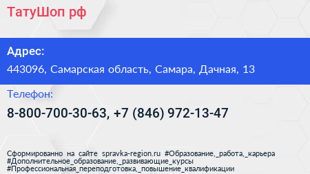 ТатуШоп.рф по адресу 443096, Самарская область, Самара, Дачная, 13 в дальнейшем Организация, размещена в следующих категориях: