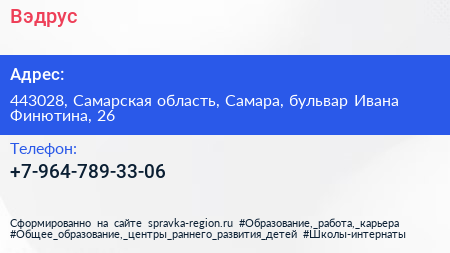 Вэдрус по адресу 443028, Самарская область, Самара, бульвар Ивана Финютина, 26 в дальнейшем Организация, размещена в следующих категориях: