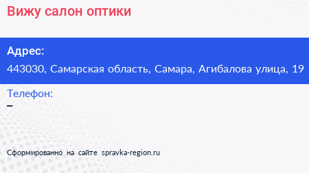 Вижу, салон оптики по адресу 443030, Самарская область, Самара, Агибалова улица, 19 в дальнейшем Организация, размещена в следующих категориях: