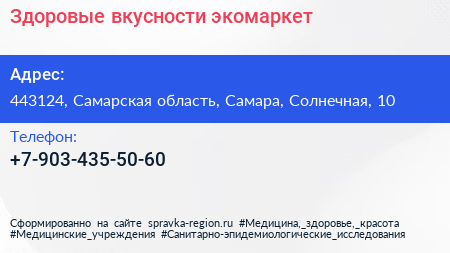 Здоровые вкусности, экомаркет по адресу 443124, Самарская область, Самара, Солнечная, 10 в дальнейшем Организация, размещена в следующих категориях: