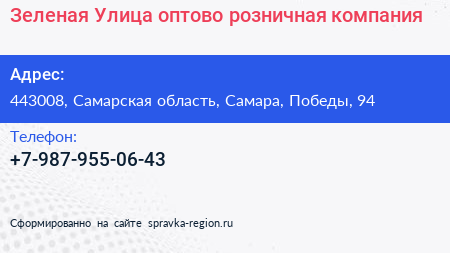 Зеленая Улица, оптово-розничная компания по адресу 443008, Самарская область, Самара, Победы, 94 в дальнейшем Организация, размещена в следующих категориях: