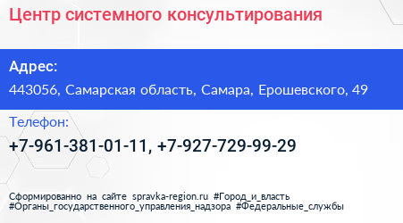 Центр системного консультирования по адресу 443056, Самарская область, Самара, Ерошевского, 49 в дальнейшем Организация, размещена в следующих категориях: